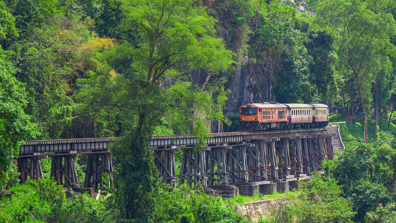 C’est sans doute le trajet le plus célèbre du pays, autant pour sa beauté que pour son passé tragique. Construite pendant la Seconde Guerre mondiale, cette ligne relie Bangkok à la province de Kanchanaburi.